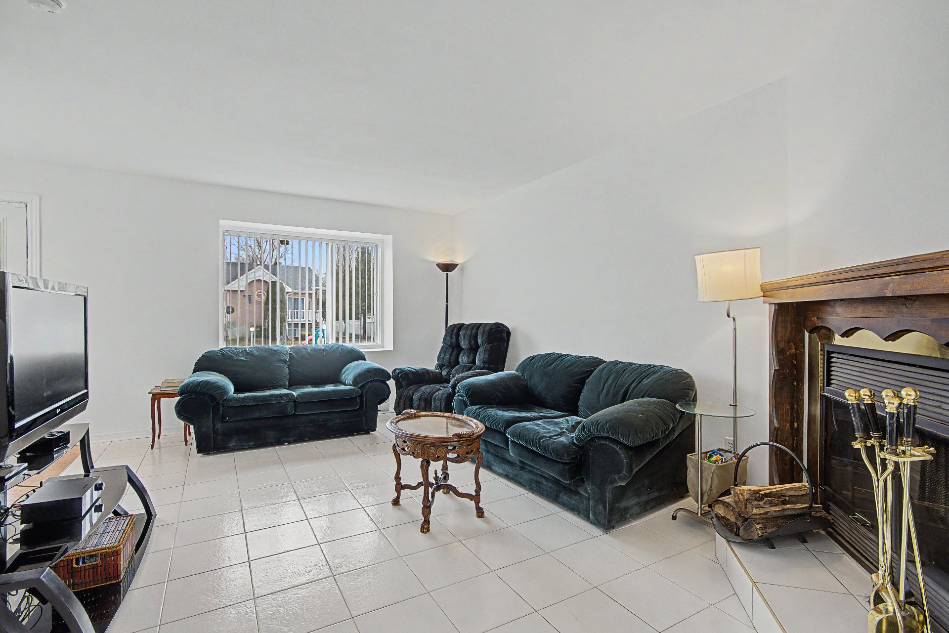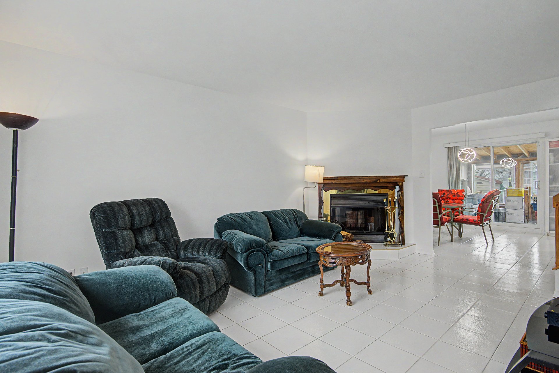 - Spacieux salon avec foyer au bois donnant du caractère à