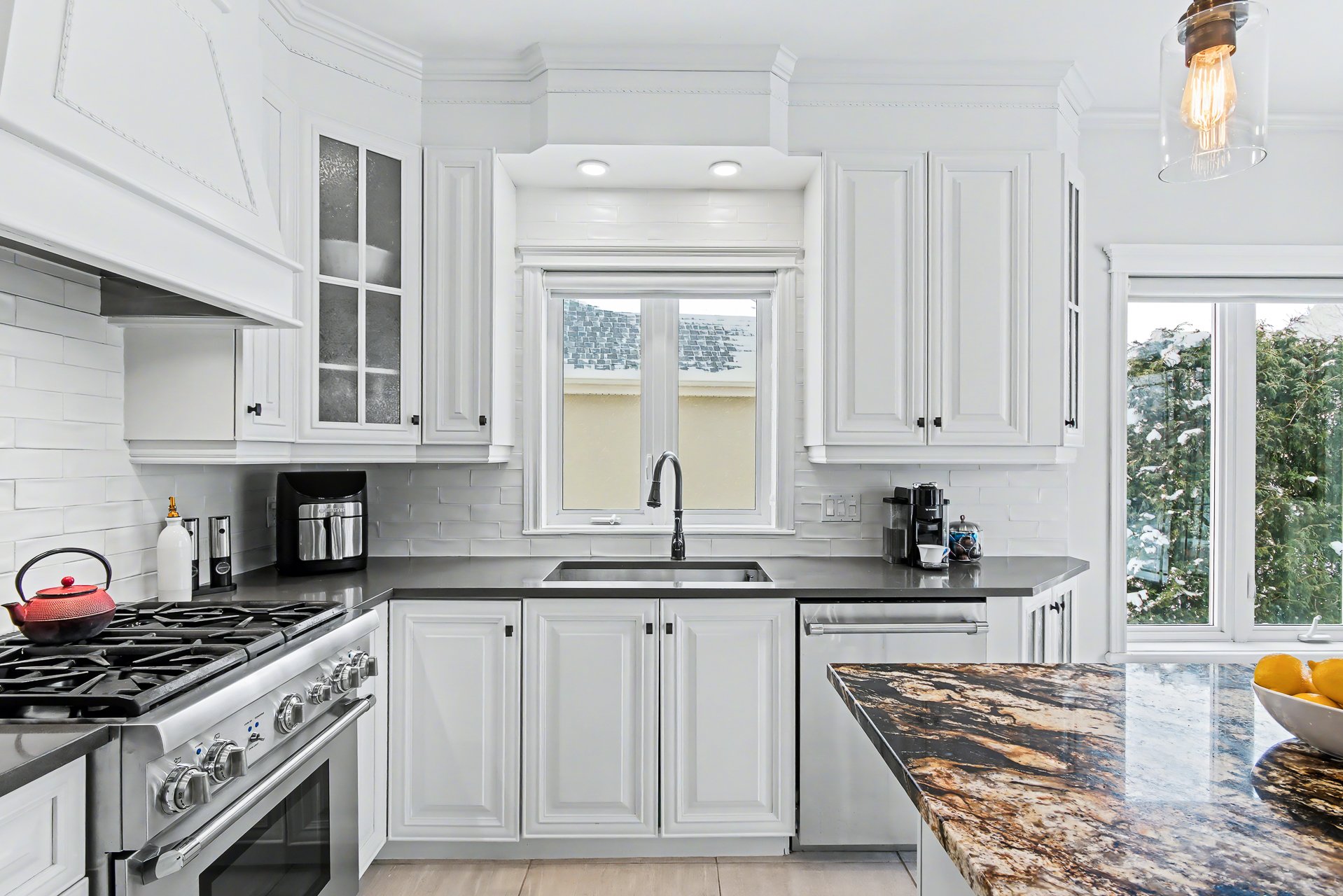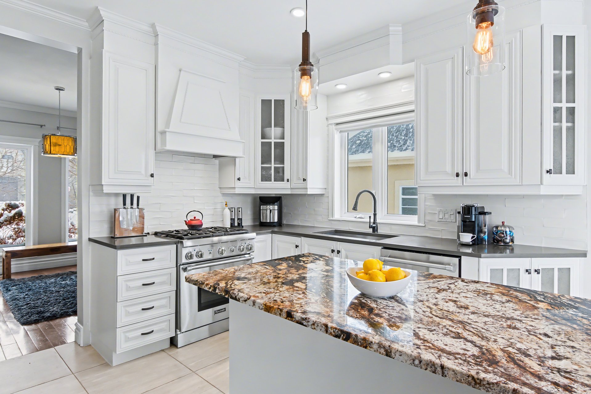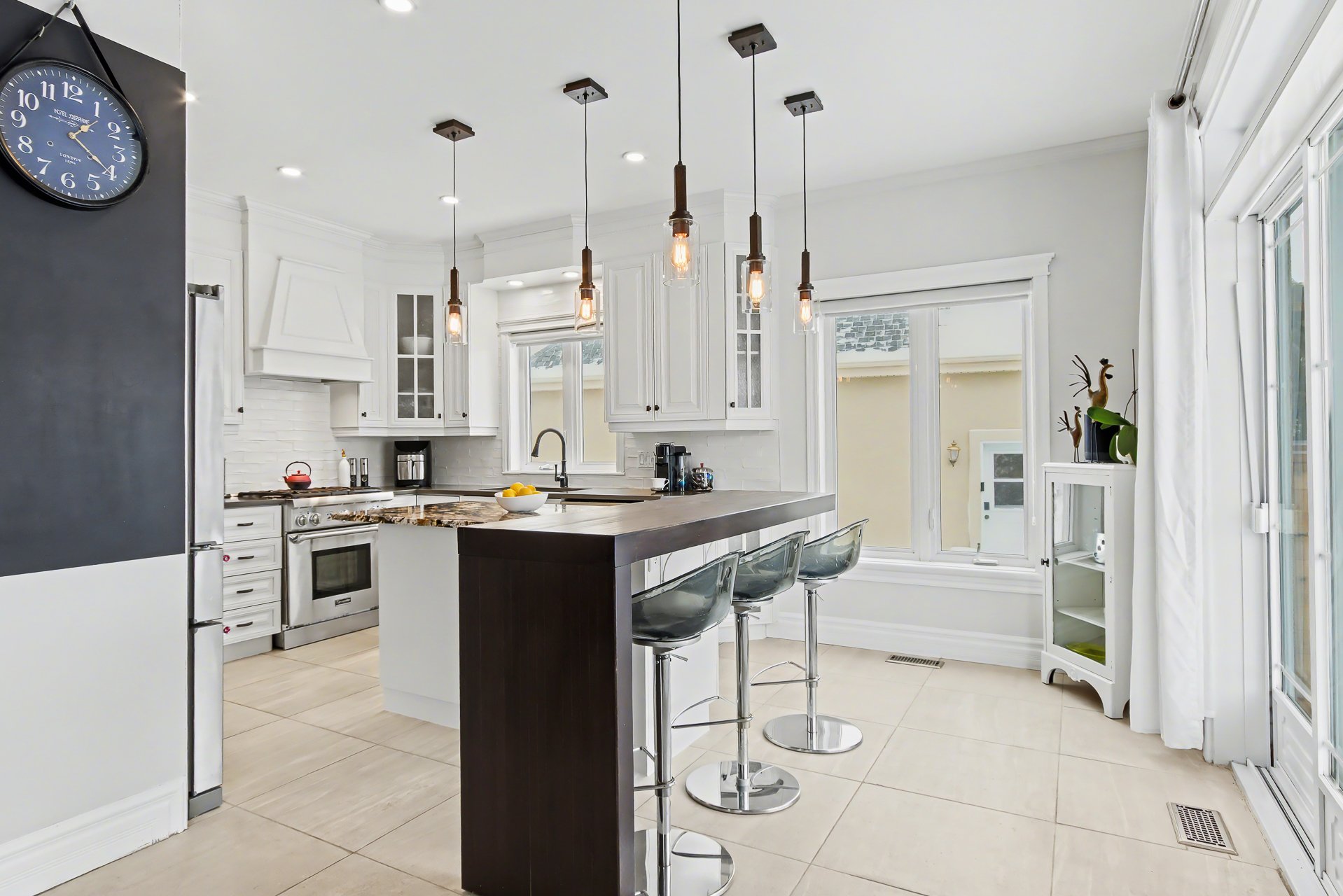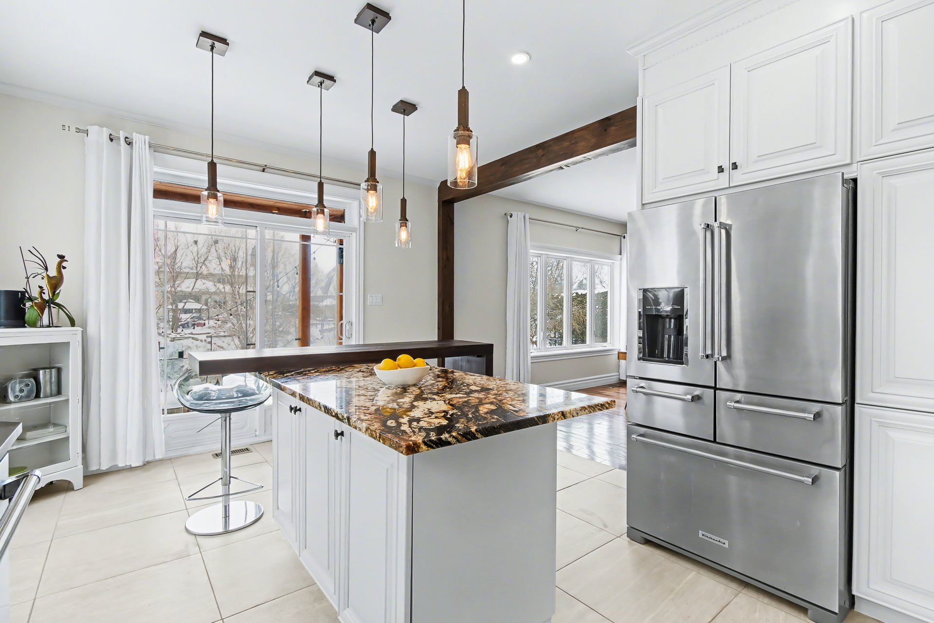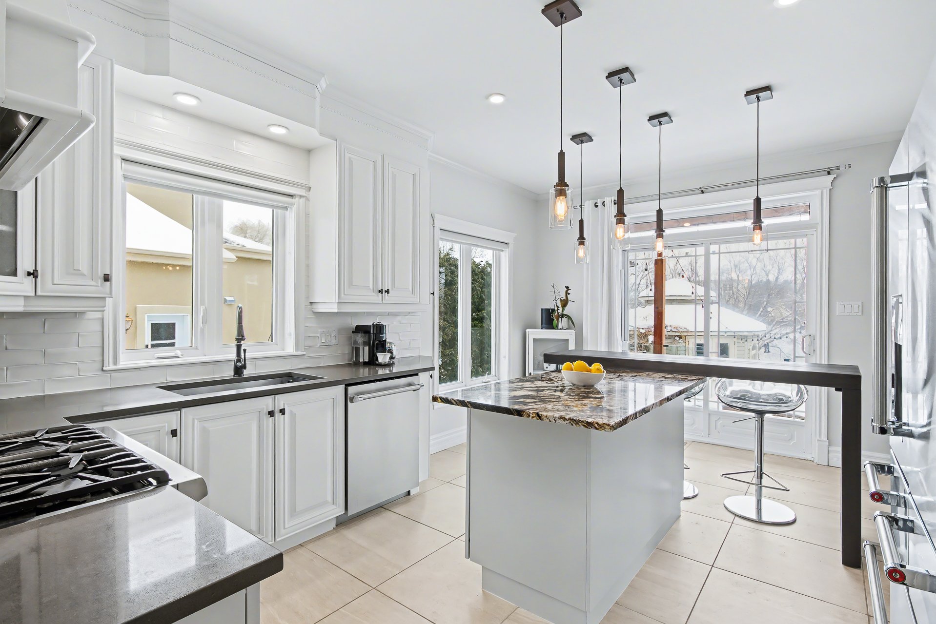 surfaces. A welcoming lunch counter completes the space.