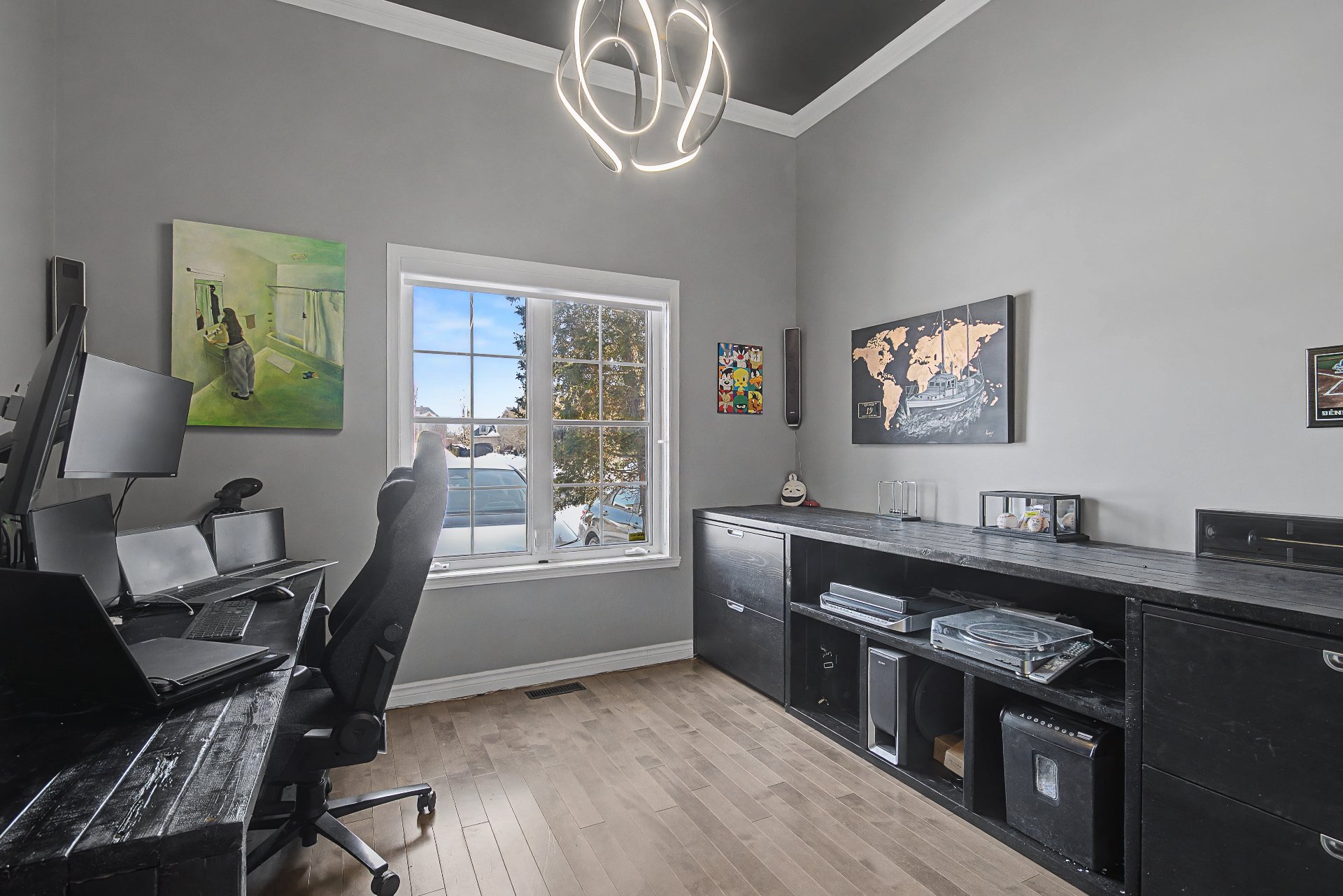 Currently divided into two sections (playroom and office),