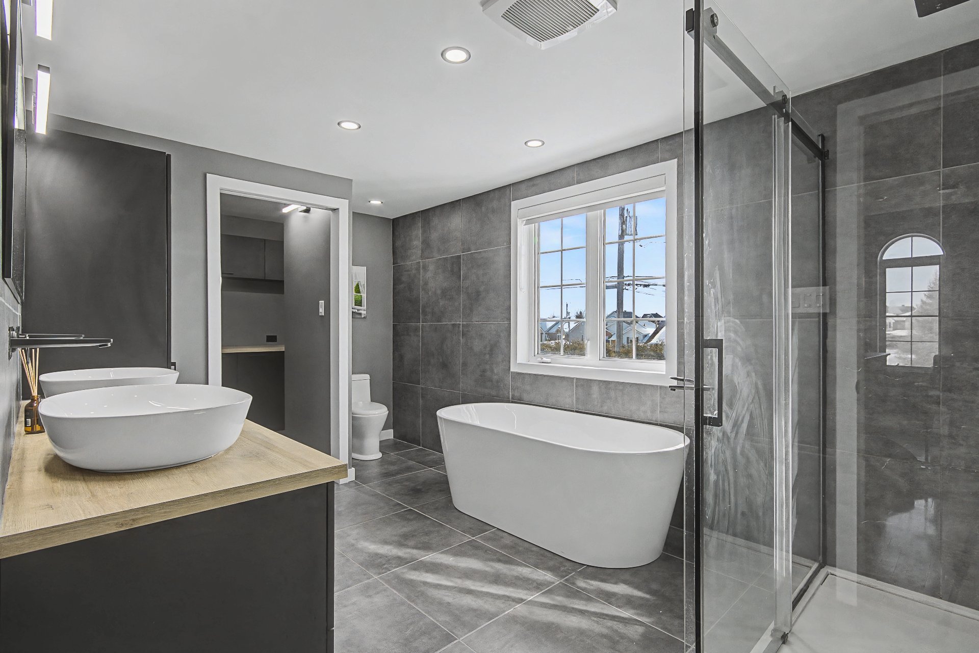 -Tastefully renovated bathroom with an ingenious layout,