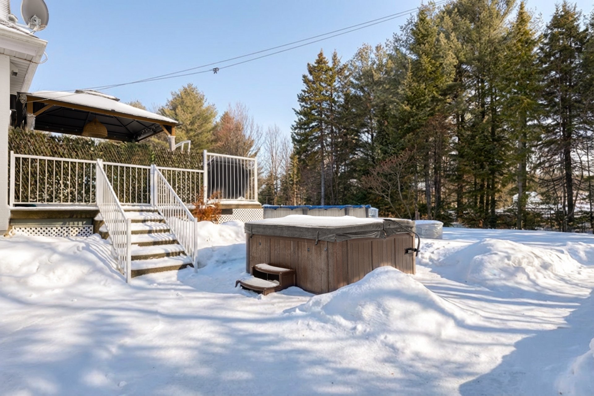 Vous y trouverez une piscine hors terre ainsi qu'un spa,